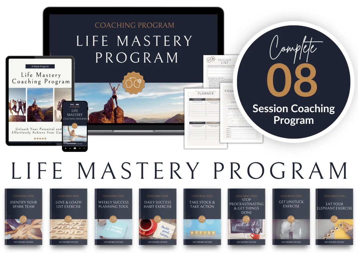 The 8-Week Life Mastery Accelerator Challenge is an online coaching program designed to help you create a more balanced and fulfilling life.